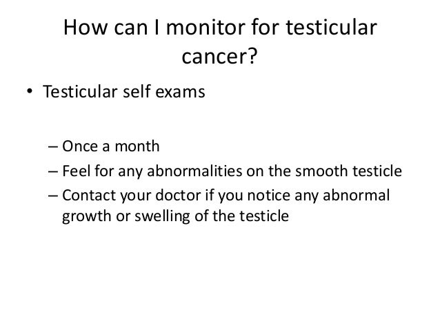 Happy Cancer Day! Here is a picture of me right before I ... from external-preview.redd.it Or a doctor may find it during a routine physical exam. You will learn about how doctors describe a cancer's growth or spread. Because other problems can cause symptoms like those of testicular cancer, your doctor may order tests to find out if you have another problem. The first step in diagnosing testicular cancer is having a doctor or nurse do an exam to feel for any abnormal lumps or swelling. Shadows on the ultrasound usually indicate that a cancer is present. Most testicular cancers are found by men themselves or their partner, very few are found by a physician. It's most likely to happen when you're young or middle aged. If the doctor thinks that you may have testicular cancer, the next step is to have an ultrasound, a quick and painless scan that looks at the inside of your testicles.